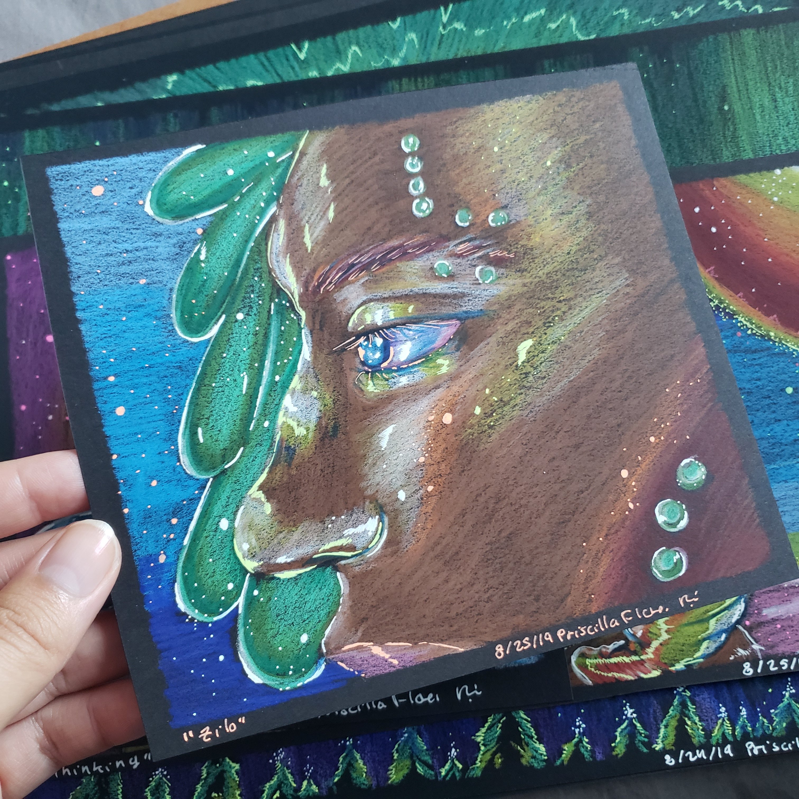 I am so happy with the amount of usage I got from this set so far. To be honest, the yellow you see behind the green is actually a third replacement I had gotten not too long ago. Turns out I gravitated to that color a lot, mostly for highlights and to give a glowing effect in some of my drawings. I always find if nice when an artist has something they are attracted to more than others when it comes to their art supplies. I think there was a red I used up twice as well, but I ended up waiting until I am completely done with this set to move onto my huge set of pencils. I personally like the challenge of having a limited color palette.